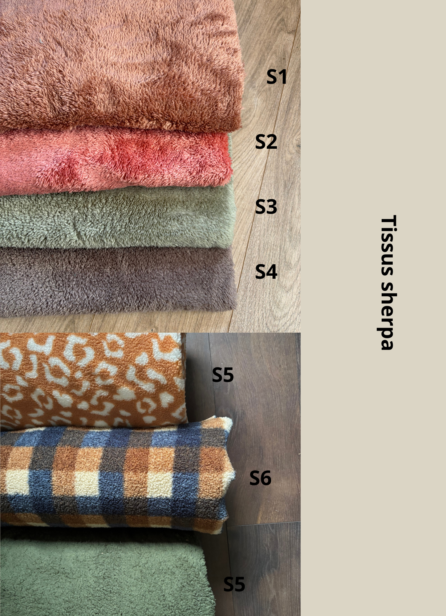 Indiquez ci-dessous le tissu extérieur (parmi les V, B, S) et le tissu intérieur. Cochez la couleur de la sangle.